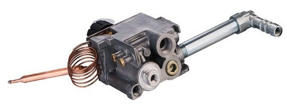 Bộ điều nhiệt (Bộ điều khiển nhiệt, van hằng nhiệt) là bộ phận bên trong bếp ga và bạn không thể nhìn thấy bên ngoài. Một ống đồng dẫn vào bếp từ bộ điều khiển van. Nó cảm nhận được nhiệt độ bên trong lò và kiểm soát lưu lượng khí. Nhiệm vụ của nó là khống chế và duy trì nhiệt độ. Một số loại bếp cao cấp hiện nay có bộ điều nhiệt điện tử, còn đa số vẫn sử dụng bộ điều nhiệt cơ.