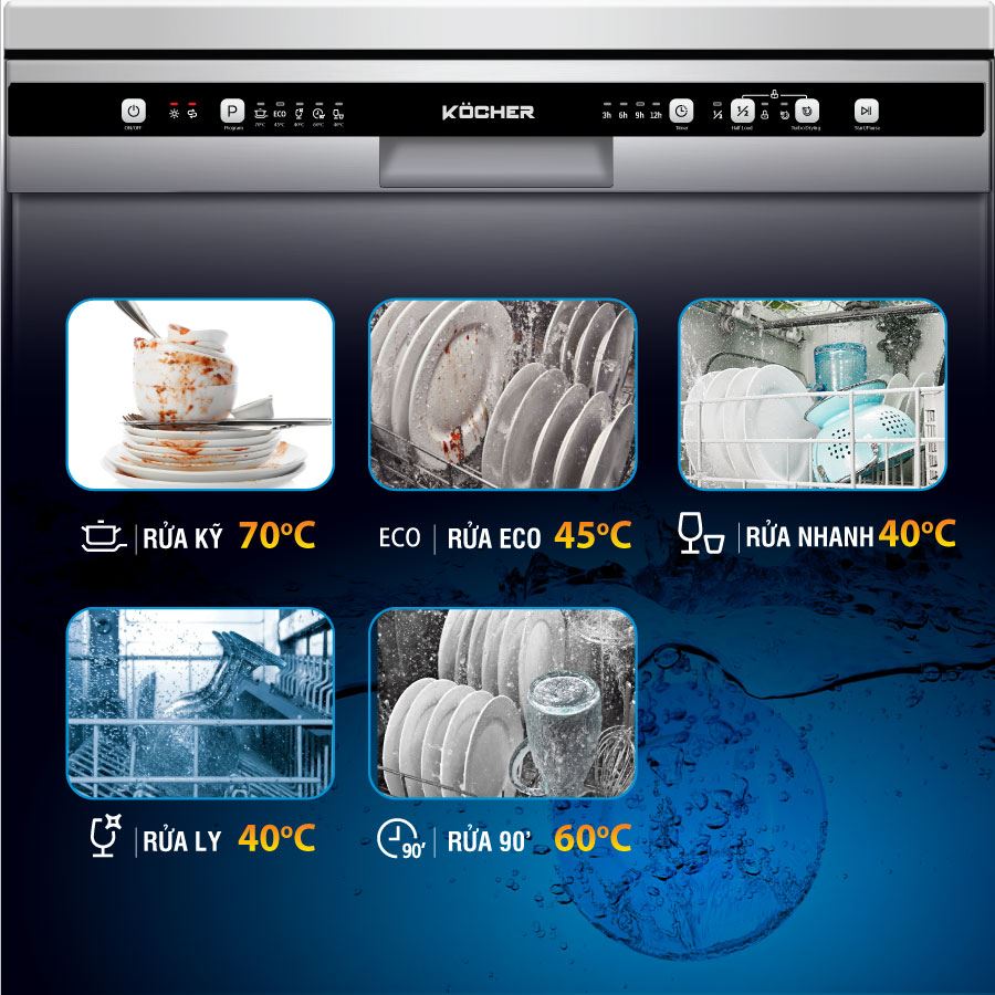 Máy rửa bát Kocher KDEU-8818 có 5 chương trình rửa: