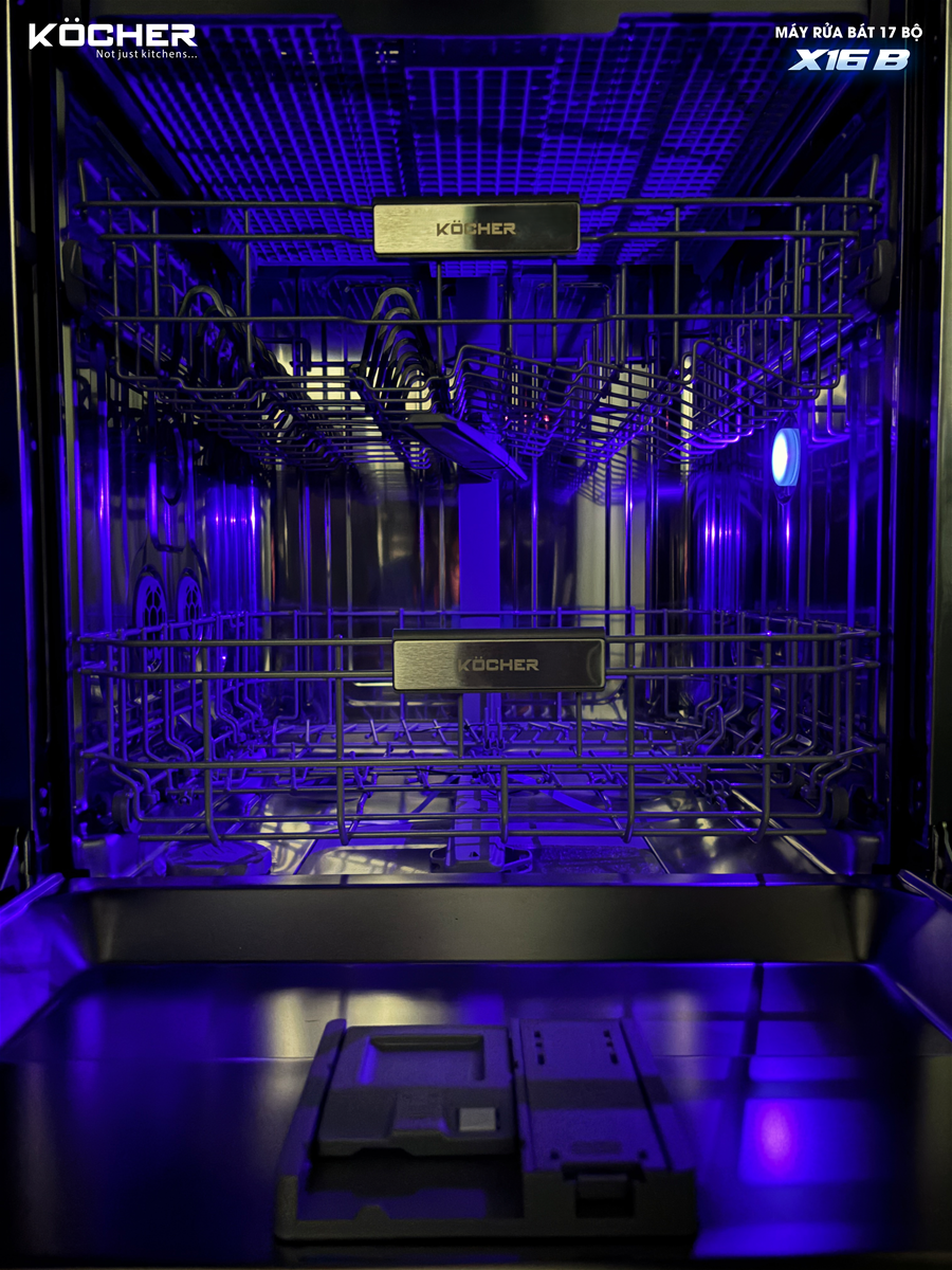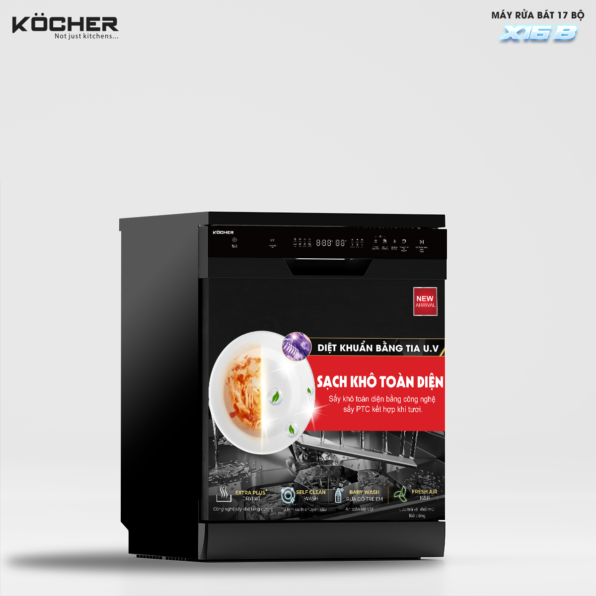 Chào đón Máy rửa bát Köcher X16B – thành viên mới nhất trong Series X của Köcher. X16B tự hào định hình lại tiêu chuẩn tiện nghi bếp núc với bộ ba lợi ích cốt lõi: khả năng sấy độc lập hoàn hảo, công nghệ U.V Light tiên tiến và tính năng lưu trữ bát đĩa 7 ngày không ẩm mốc. Đây không chỉ là một chiếc máy rửa bát, mà là giải pháp 3 trong 1 toàn diện, mang đến sự an tâm và hiệu quả vượt trội cho mọi gia đình.