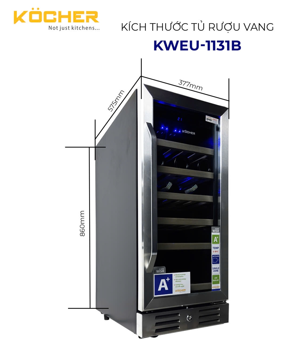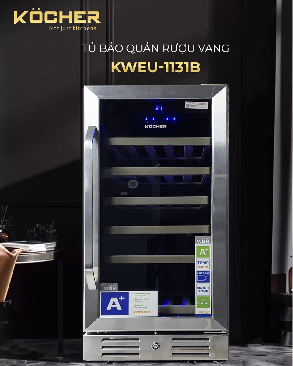 Tủ bảo quản rượu vang Köcher KWEU-1131B – Lưu giữ trọn vẹn hương vị rượu vang
