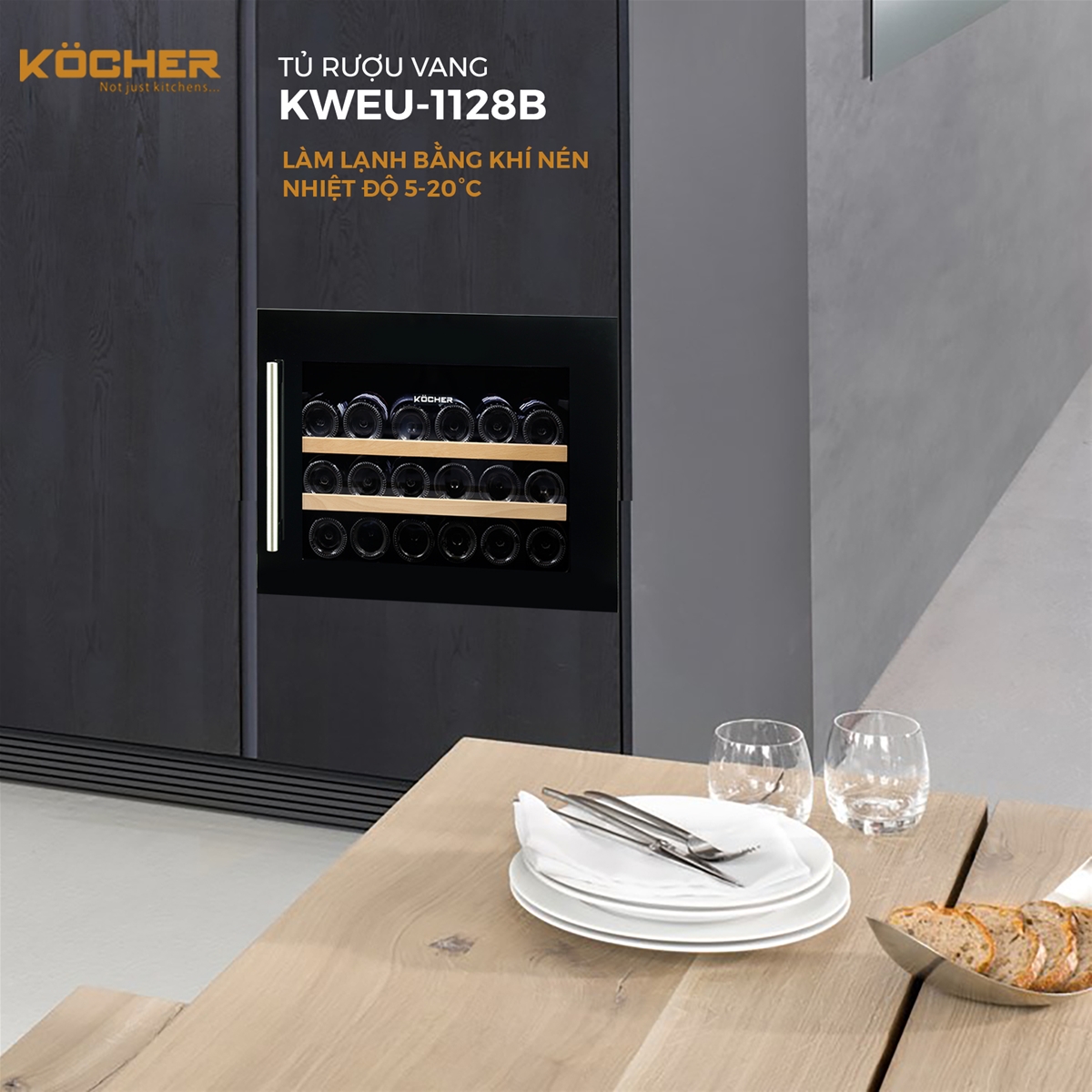Tủ rượu vang KWEU-1128B 28 chai với công nghệ nén chuyên nghiệp – cho khí lạnh lưu lâu dài tối ưu.
